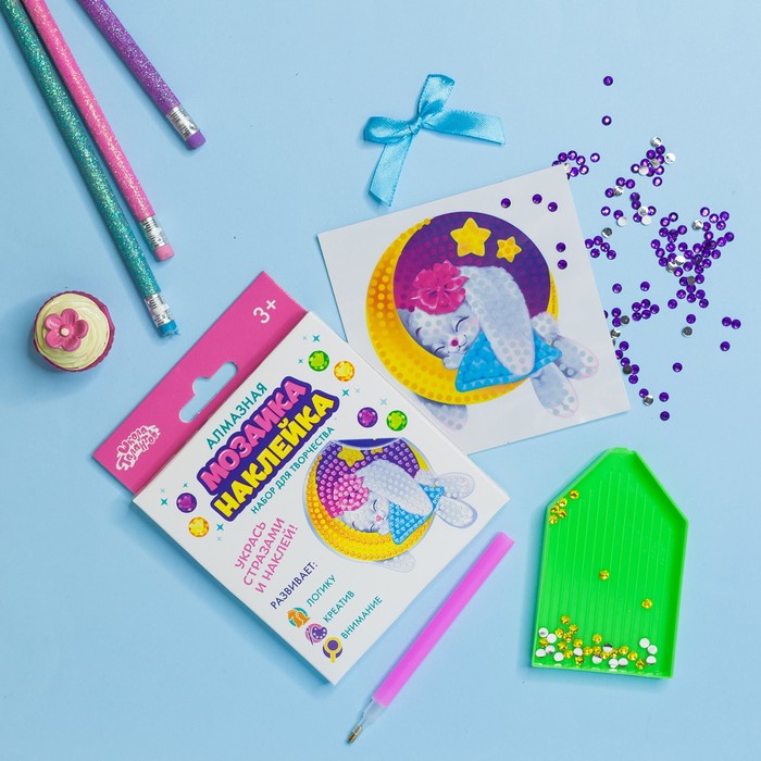 Алмазная мозаика-стикер на наклейке для детей «Зайка»