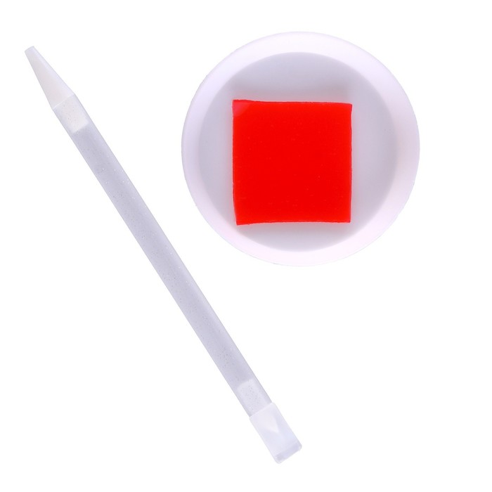 Откройте небольшой участок схемы, приподняв и отогнув защитный слой.В таблице найдите номер, соответствующий символу на схеме и отсыпте из пакетика с этим номером в ёмкость немного деталей.Возьмите специальный карандаш и заполните его основание клеем, а затем возьмите им страз.Повторите действия с остальными номерами.После того как вы наклеете все детали, у вас получится замечательный стикер. Он может стать отличным украшением.