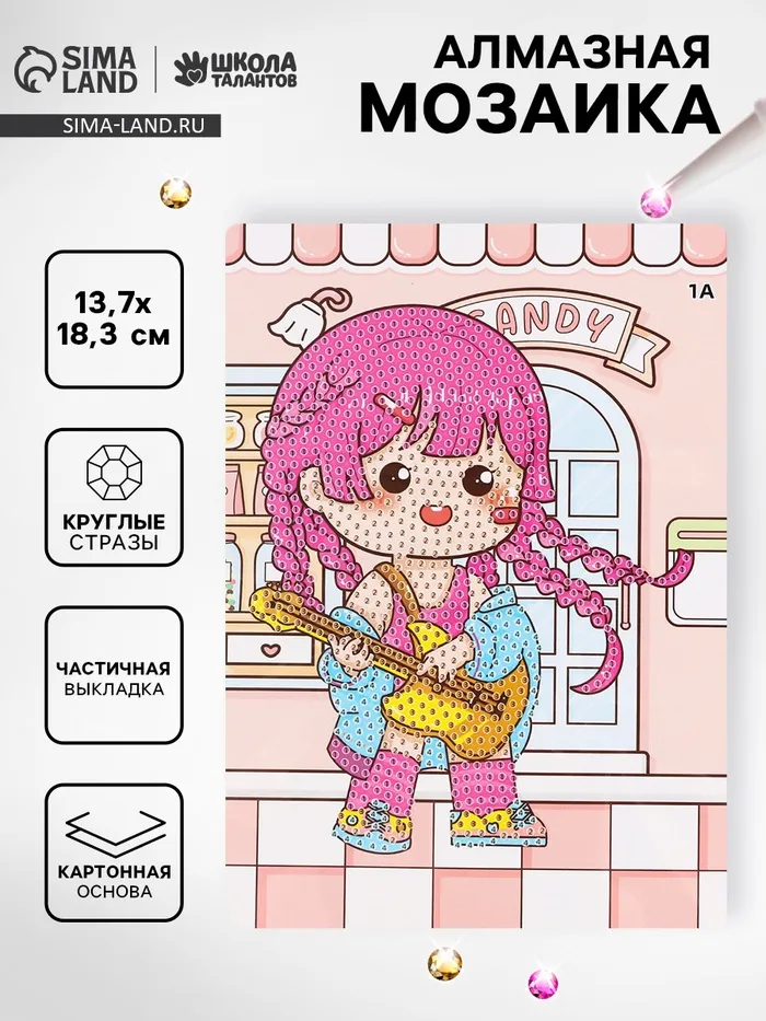 Алмазная мозаика — это чудесный творческий тренажёр для детей от 3 лет. Вы сможете вместе с ребёнком провести совместный досуг за картиной и создать яркий, забавный рисунок, которым потом можно будет украсить интерьер детской спальни. Алмазы прикрепляются на обозначенные цифрами поля, благодаря чему ребёнок тренирует внимание, мелкую моторику, а так же счёт и усидчивость.