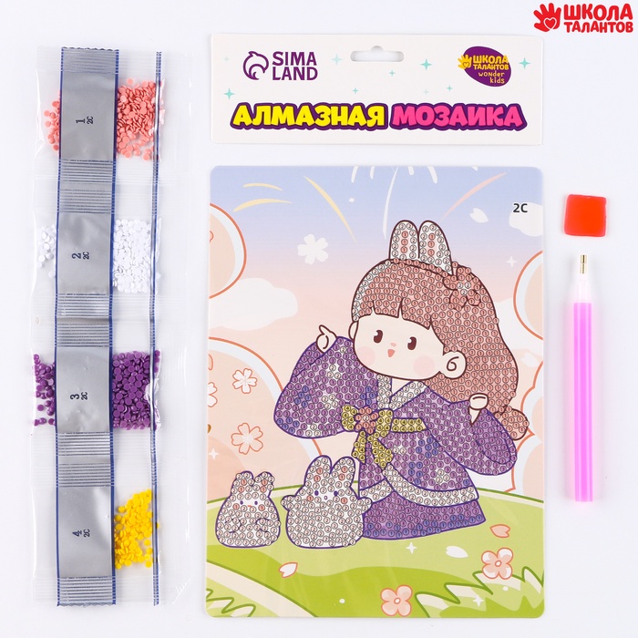 Алмазная мозаика — это чудесный творческий тренажёр для детей от 3 лет. Вы сможете вместе с ребёнком провести совместный досуг за картиной и создать яркий, забавный рисунок, которым потом можно будет украсить интерьер детской спальни. Алмазы прикрепляются на обозначенные цифрами поля, благодаря чему ребёнок тренирует внимание, мелкую моторику, а так же счёт и усидчивость.