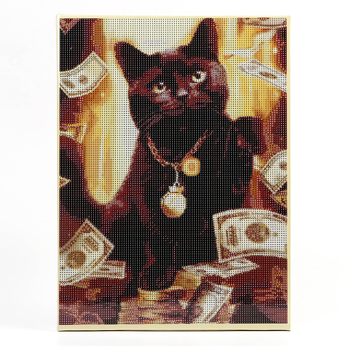 Алмазная вышивка полное заполнение «Кот на удачу», на раме 30×40 см — Характеристики