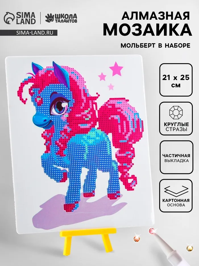 Алмазная вышивка «Пони», с частичным заполнением, с подставкой, 21 × 25 см — Характеристики