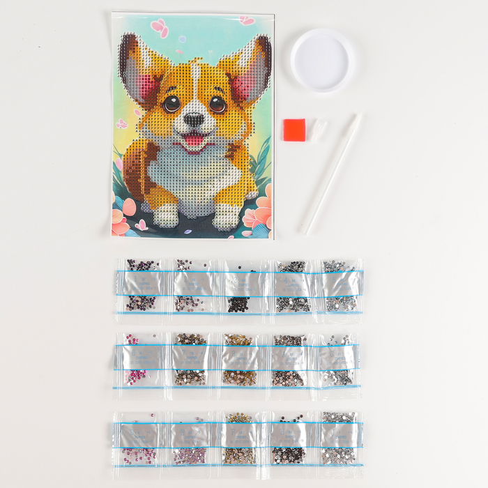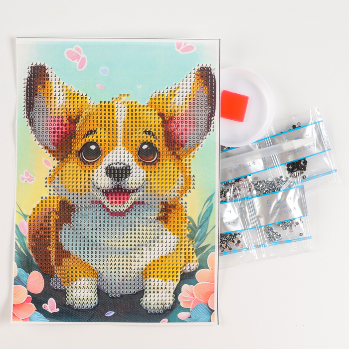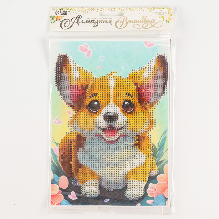 Алмазная вышивка с частичным заполнением «Малыш корги», 15 х 21 см, холст — Характеристики