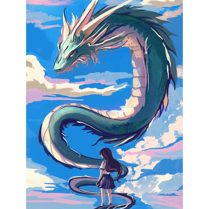 Алмазная вышивка с частичным заполнением на холсте «Девочка и дракон», 30 х 40 см — Характеристики