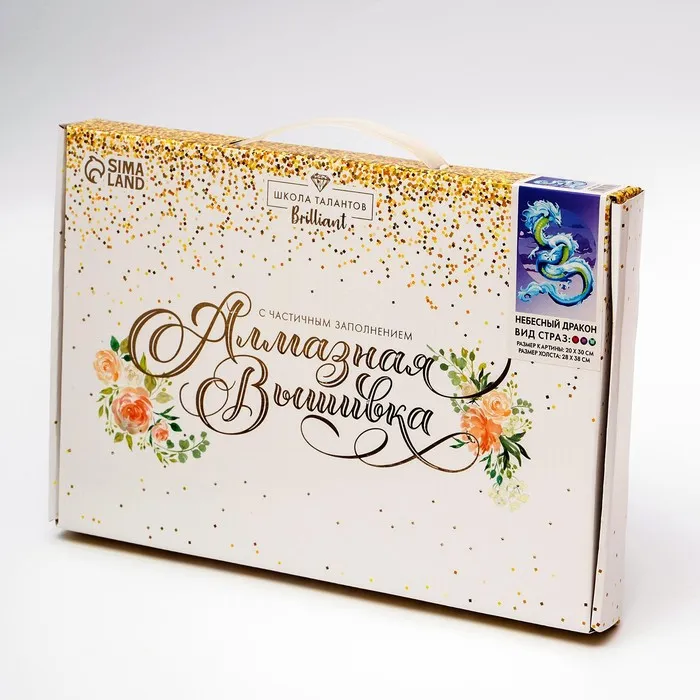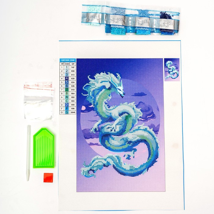 Алмазная вышивка с частичным заполнением на холсте «Небесный дракон», 20×30 см — Характеристики