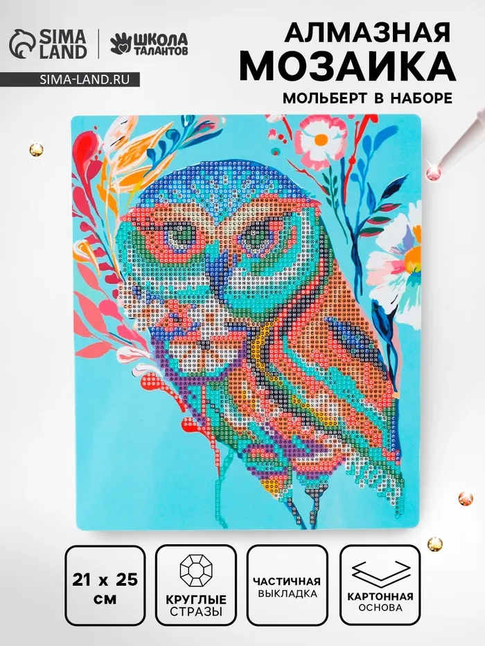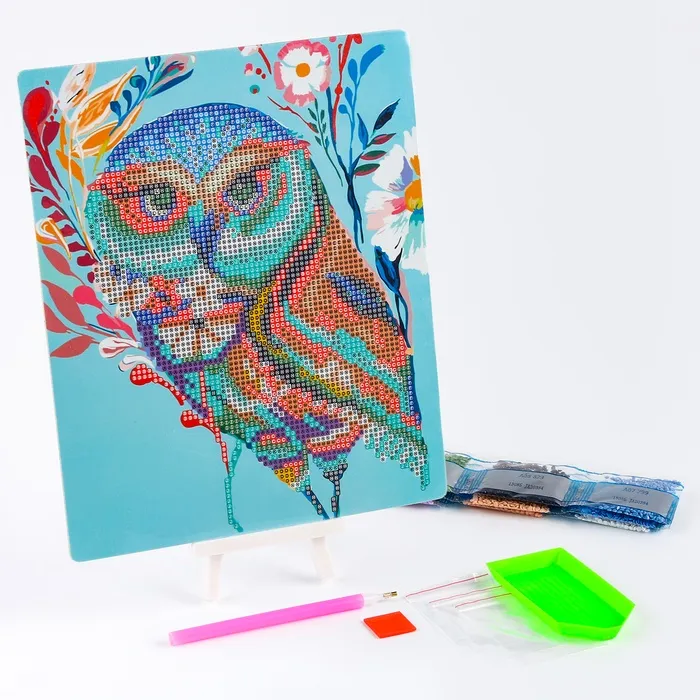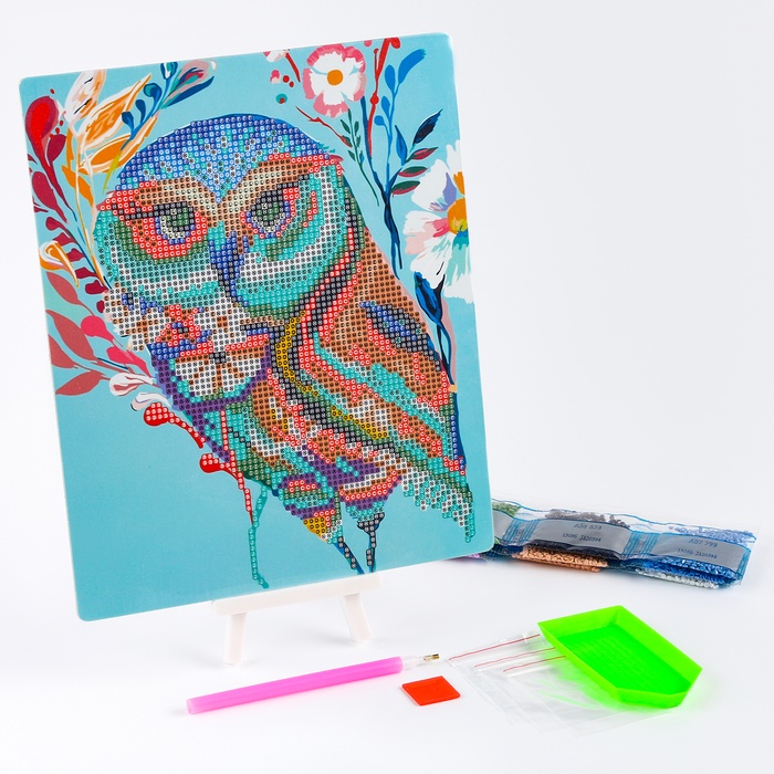 Алмазная вышивка «Сова-красавица», с подставкой, с частичным заполнением — Характеристики