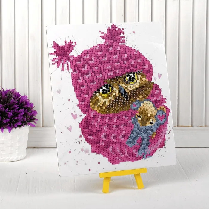 В данном наборе есть небольшой мольберт, с ним готовое творение можно удобно расположить на полке или столе без дополнительных креплений.