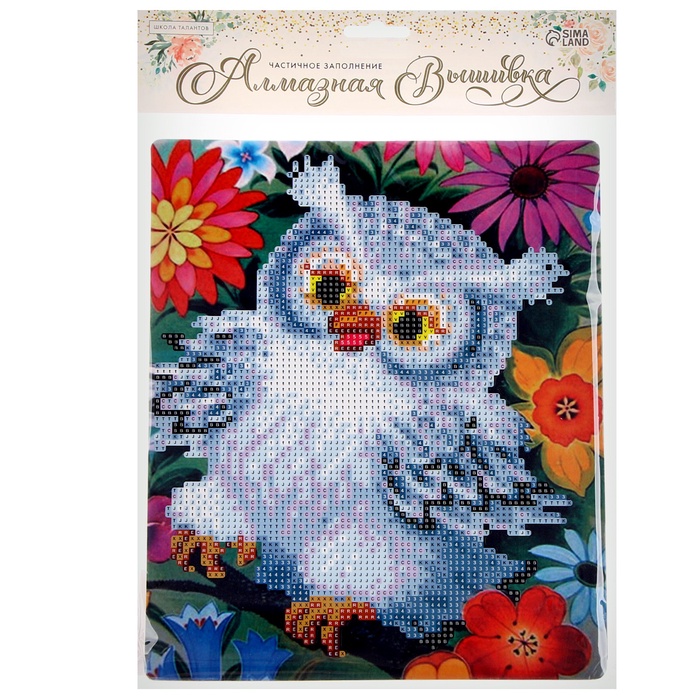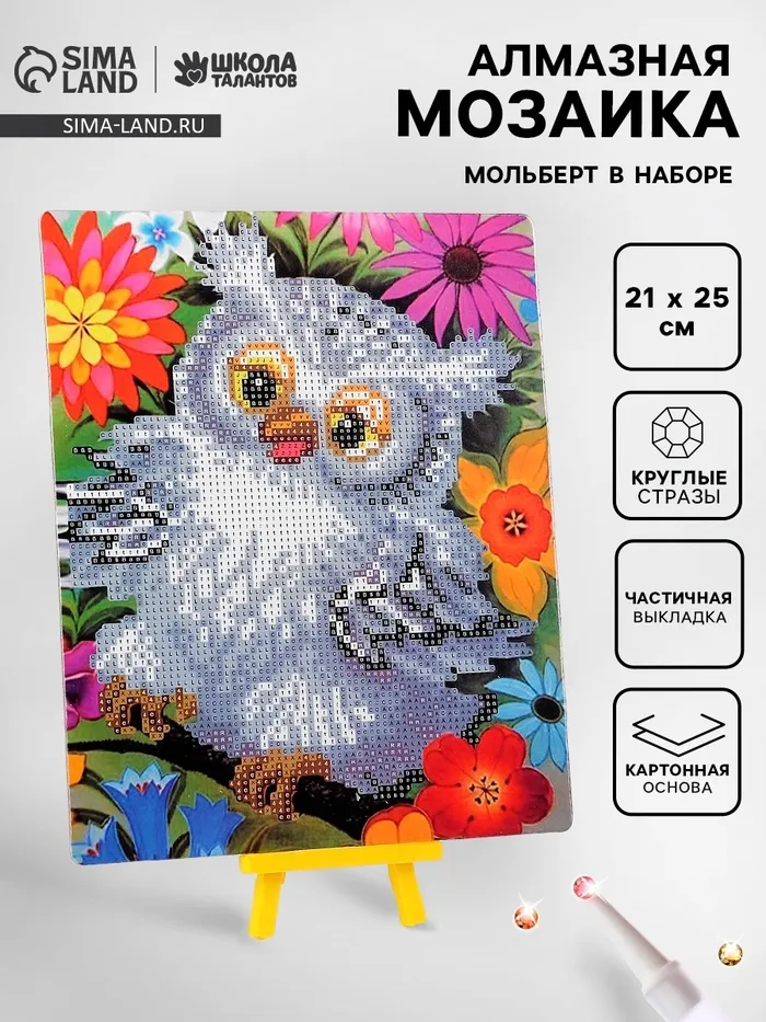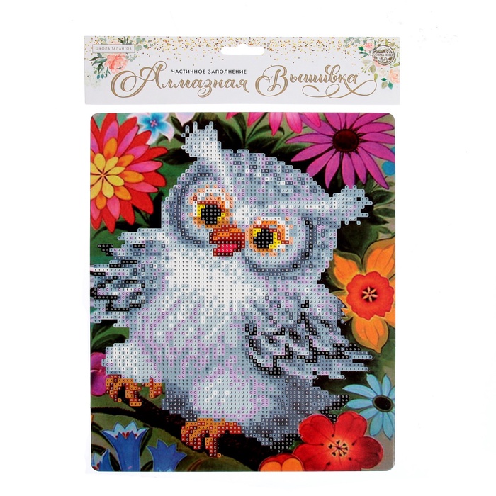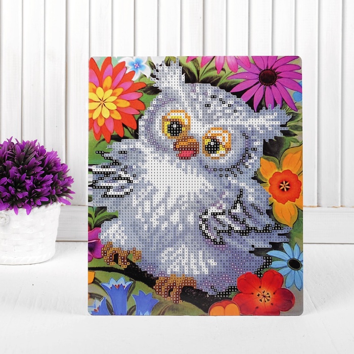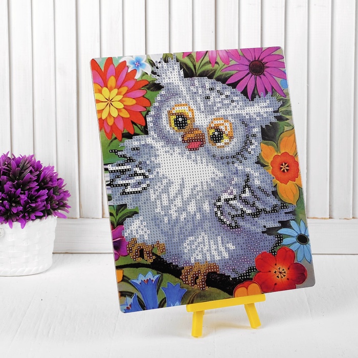 Алмазная вышивка «Сова в цветах», с подставкой, с частичным заполнением — Характеристики