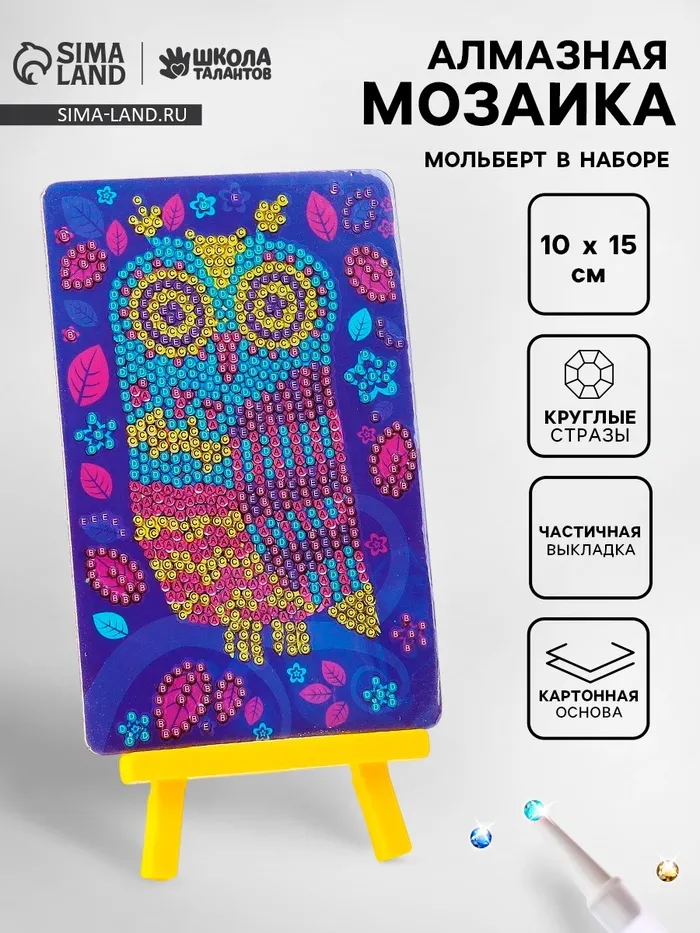 Алмазная вышивка «Совушка», с частичным заполнением, с подставкой, 10 × 15 см — Характеристики