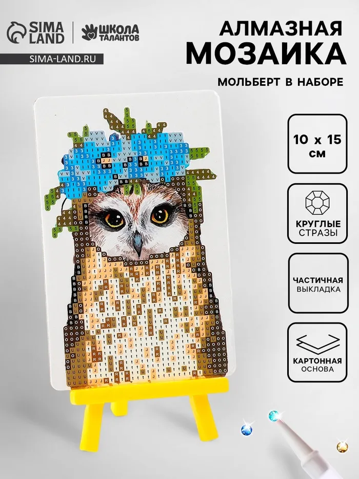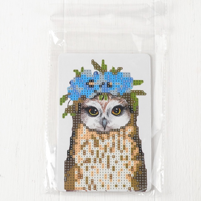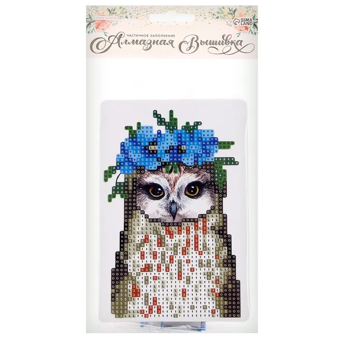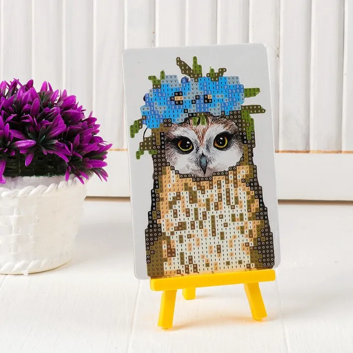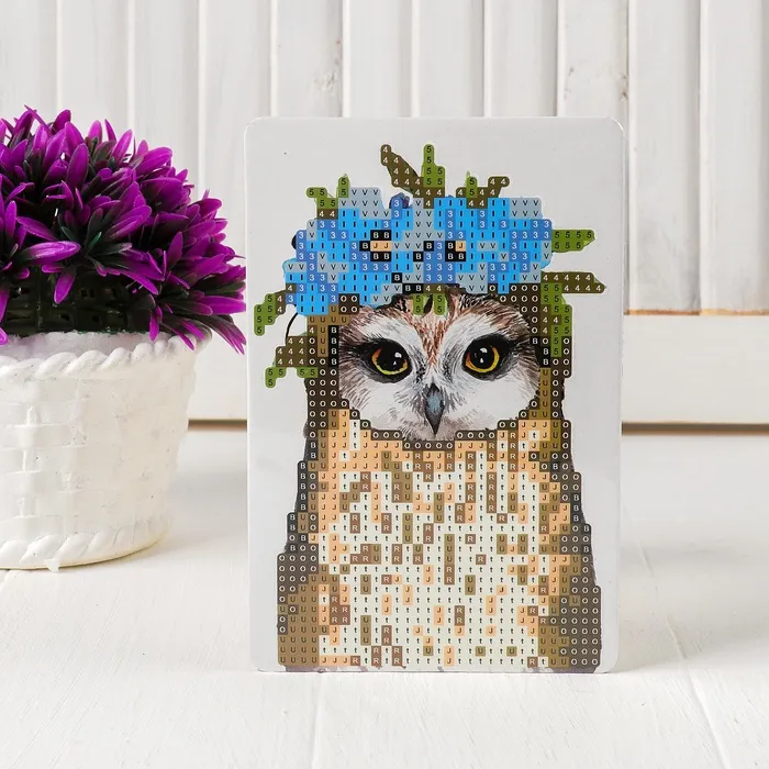 Алмазная вышивка «Совушка с венком из цветов», с частичным заполнением, с подставкой, 10 × 15 см — Характеристики