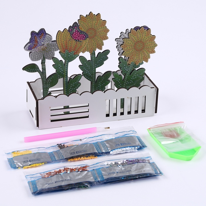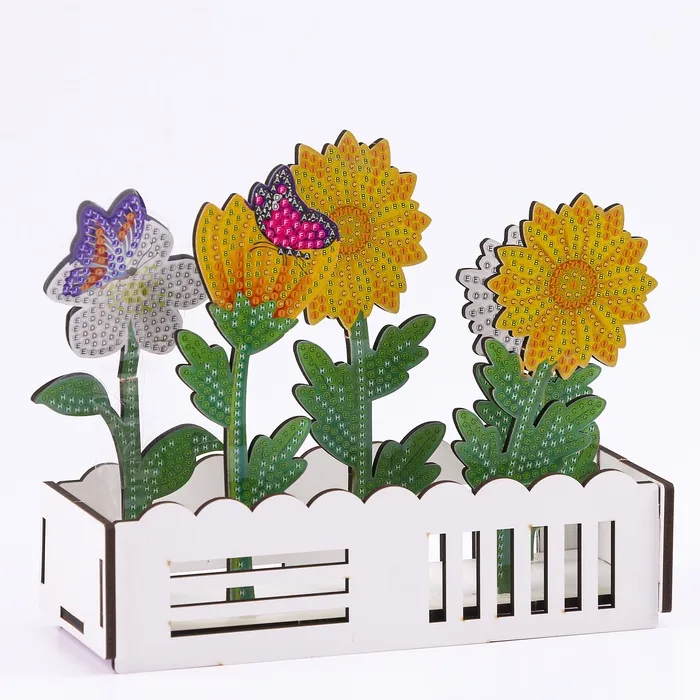 Алмазная вышивка «Цветы с бабочками», интерьерный декор — Характеристики
