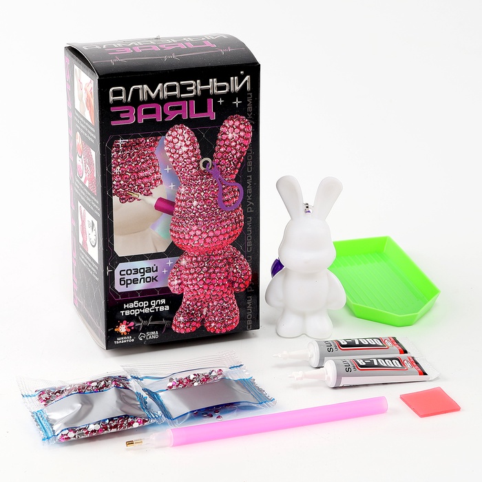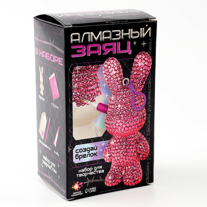 Алмазный брелок «Зайка», цвет розовый, своими руками — Характеристики