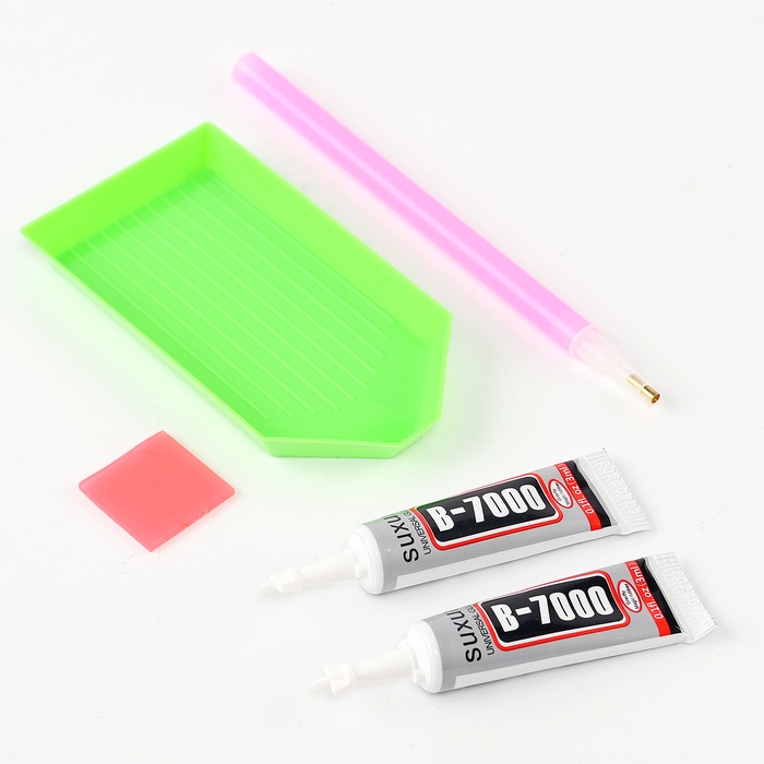 - Кончиком стилуса подцепляйте стразы по одной штуке из лотка и переносите на участок с клеем.