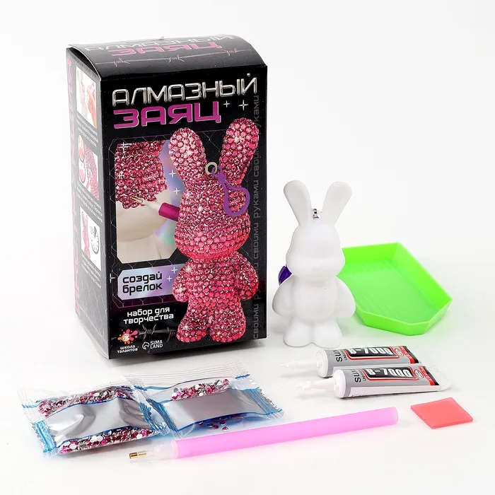 Алмазный брелок «Зайка», цвет розовый, своими руками — Характеристики