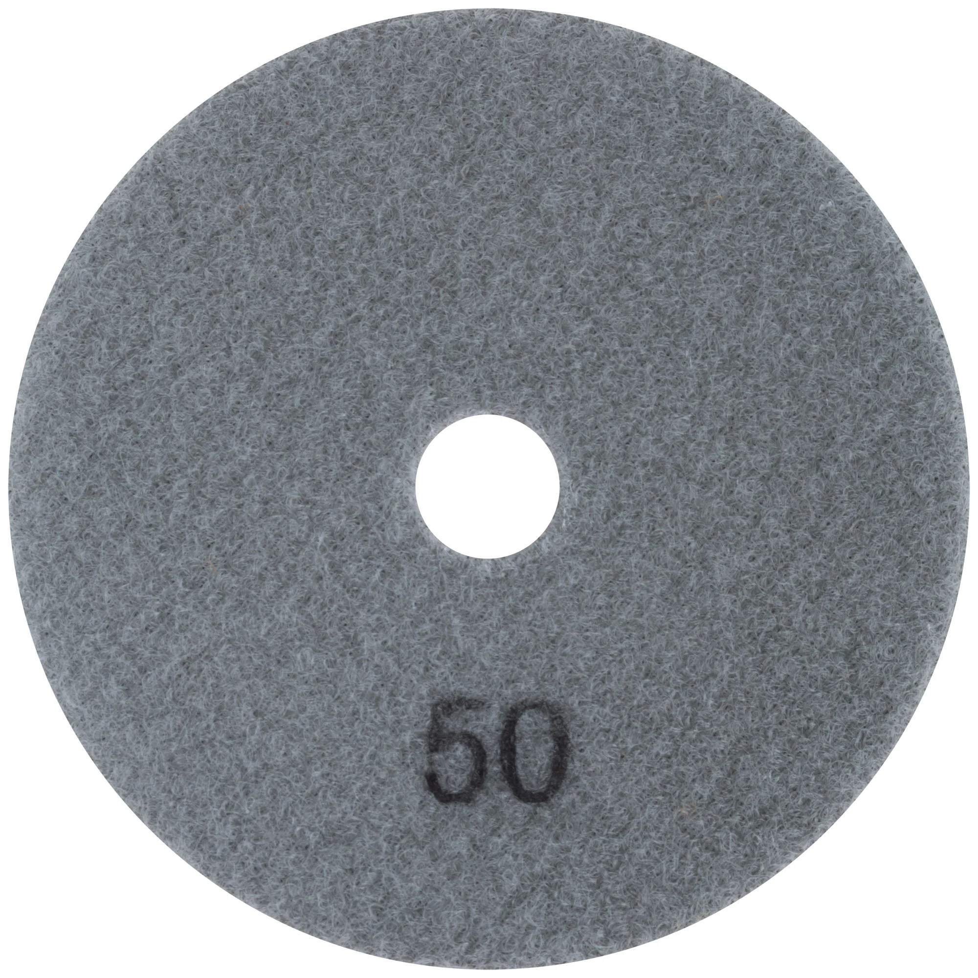 Круг оснащен ворсовой основой, что позволяет надежно крепить его на шлифовальные диски или опорные тарелки. Он совместим с углошлифовальными машинами, оснащенными регулировкой оборотов, а также с электродрелями мощностью не менее 650 Вт. Рабочая поверхность содержит порошок из технических алмазов, что гарантирует долговечность и эффективность использования.