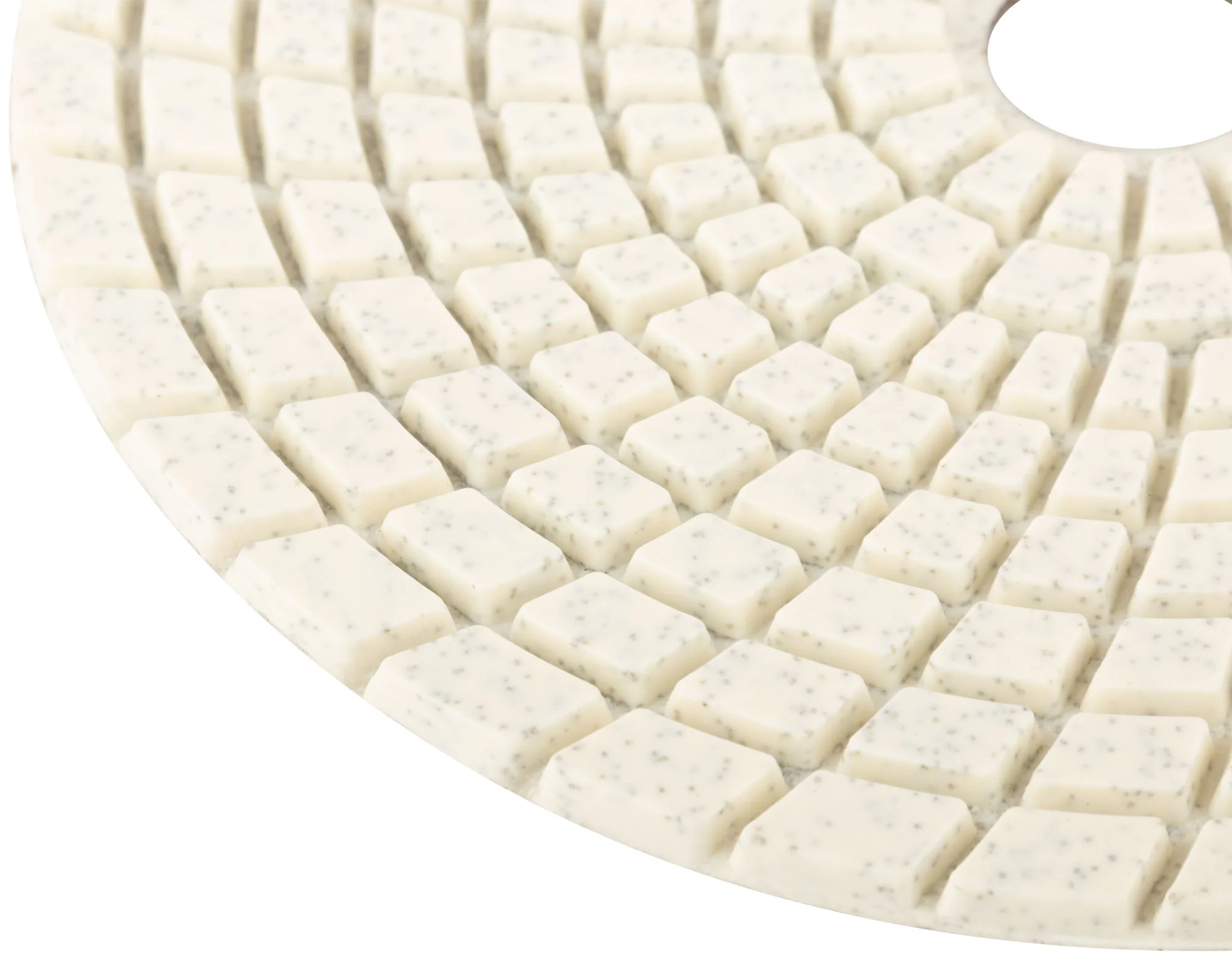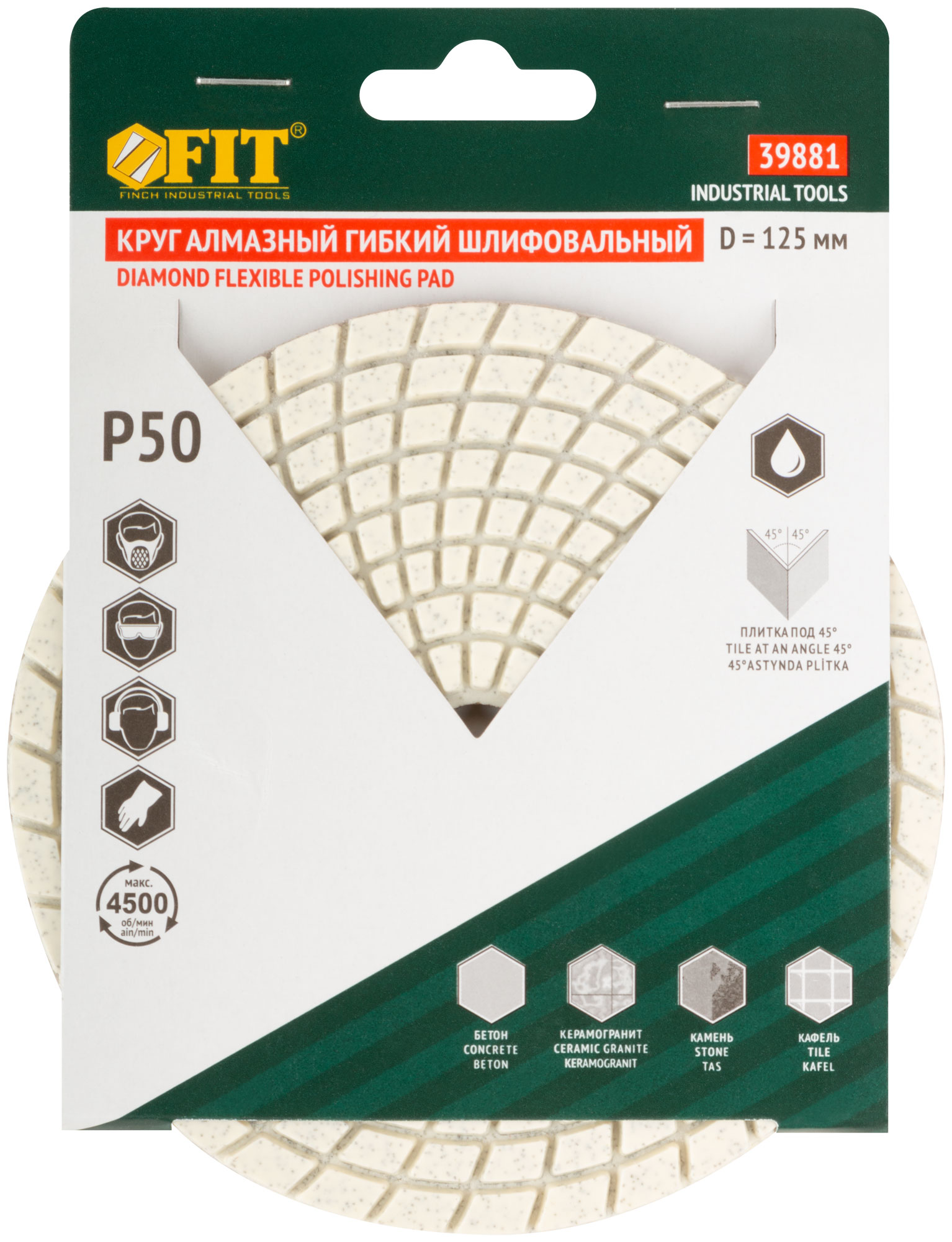 Идеально подходит для использования при шлифовке и полировке бетонных, мраморных и гранитных поверхностей. Этот круг поможет вам легко справиться с задачей шлифования неровных краев керамической плитки после запила алмазным диском под углом 45°.