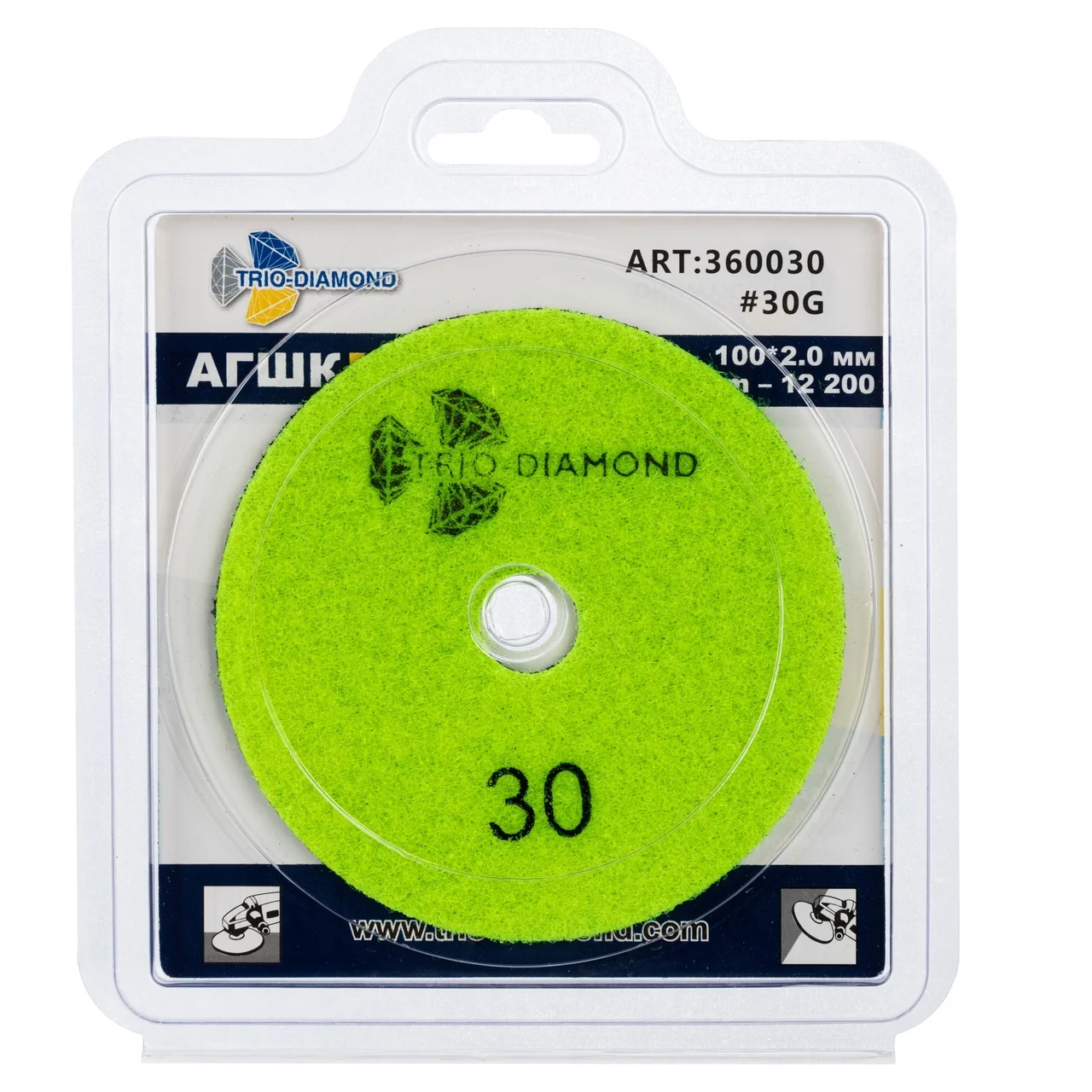 Круг диаметром 100 мм оснащён зерном №30 и изготовлен с использованием передовых технологий бренда TRIO-DIAMOND. Он легко крепится на УШМ благодаря системе липучки, что делает его замену быстрой и простой.