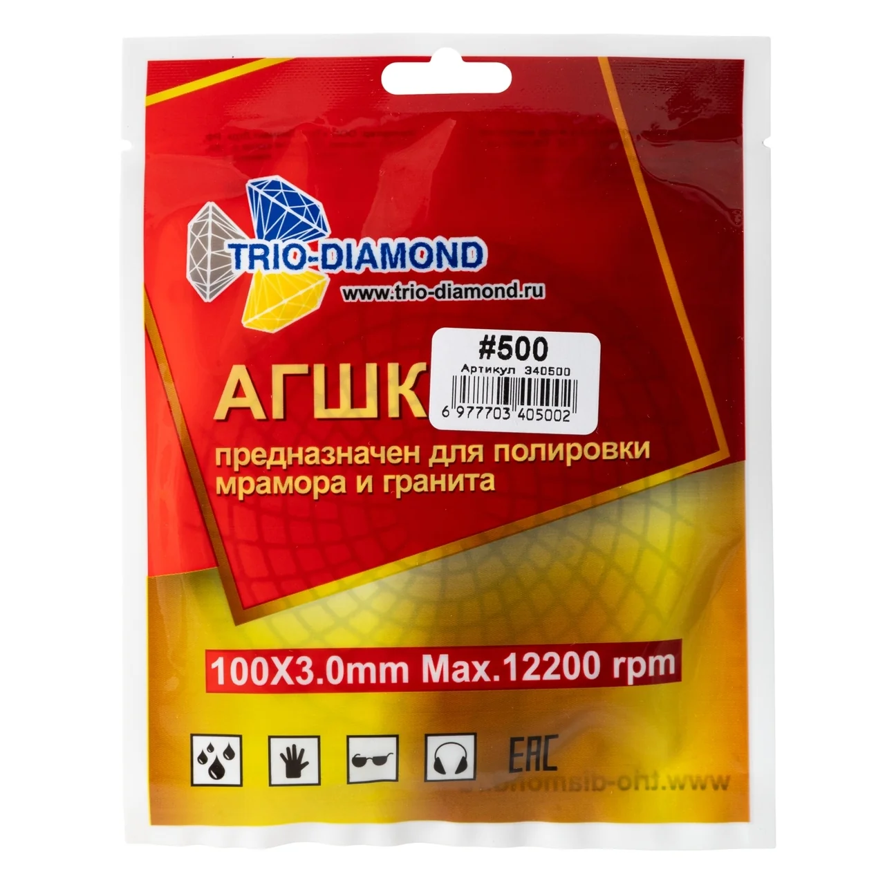 Шлифовальный круг диаметром 100 мм от TRIO-DIAMOND оснащен креплением на липучке, что упрощает его установку на угловую шлифовальную машину (УШМ). Зернистость круга 500 и высота рабочей поверхности 3 мм позволяют добиваться отличных результатов при мокрой шлифовке.