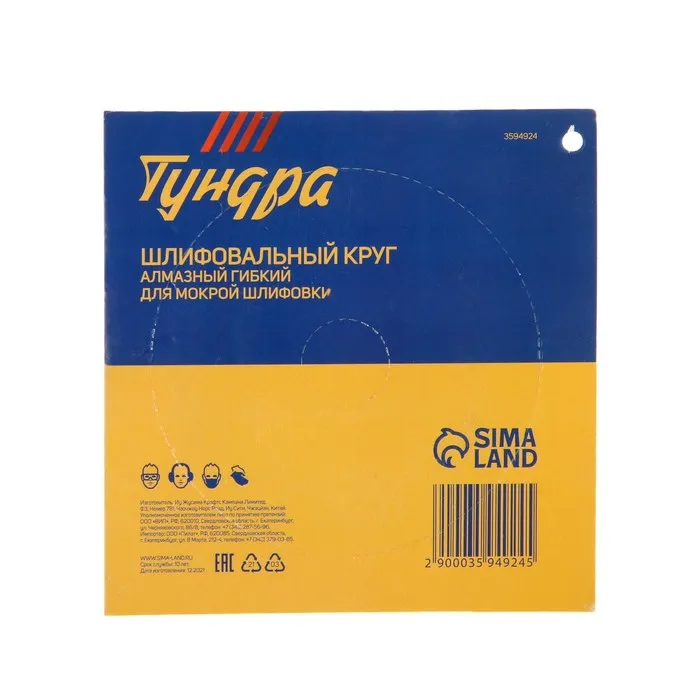 Алмазный гибкий шлифовальный круг ТУНДРА "Черепашка", для мокрой шлифовки, 100 мм, № 100 — Характеристики