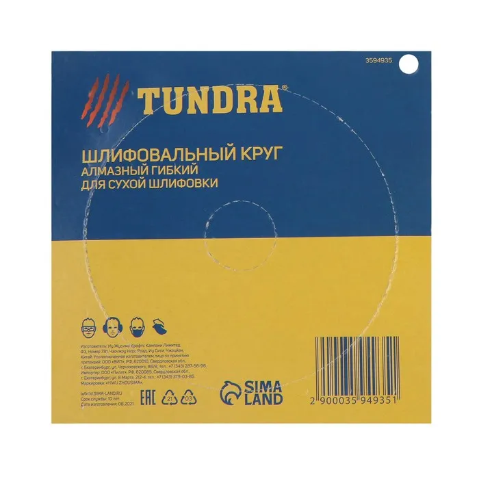 Алмазный гибкий шлифовальный круг ТУНДРА "Черепашка", для сухой шлифовки, 100 мм, № 800 — Характеристики