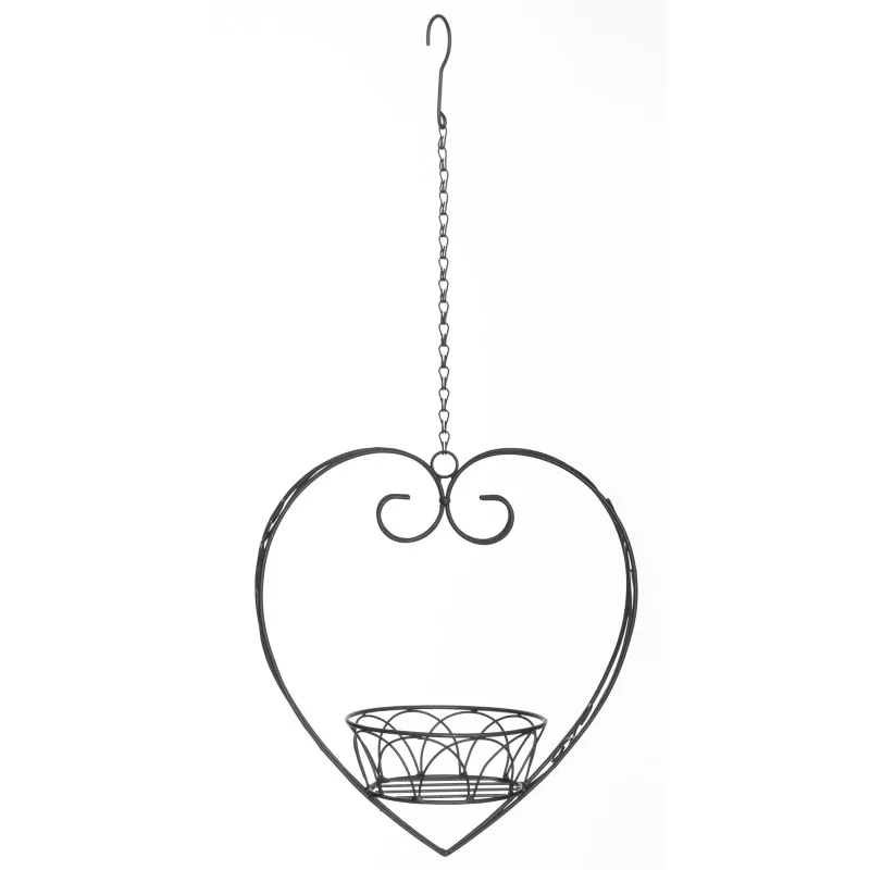 Черная подвеска в форме сердца из кованого железа. В нее можно поместить цветок или даже светодиодную свечу, создавая уютную атмосферу в любом помещении.