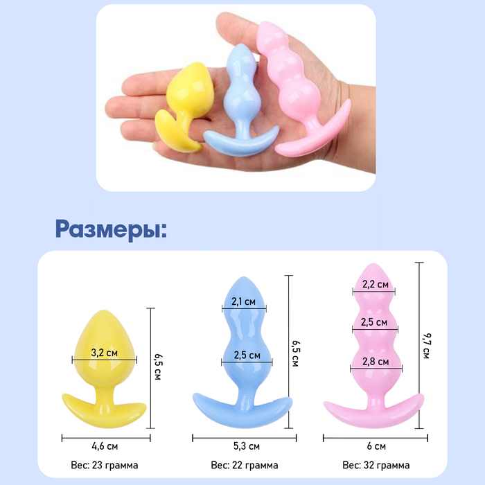 Анальная пробка, набор 3 шт., силикон — Характеристики