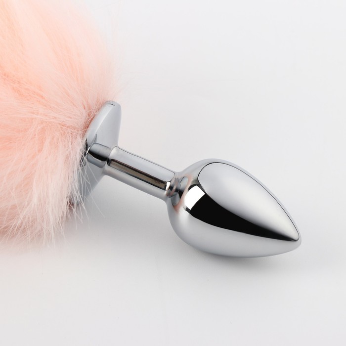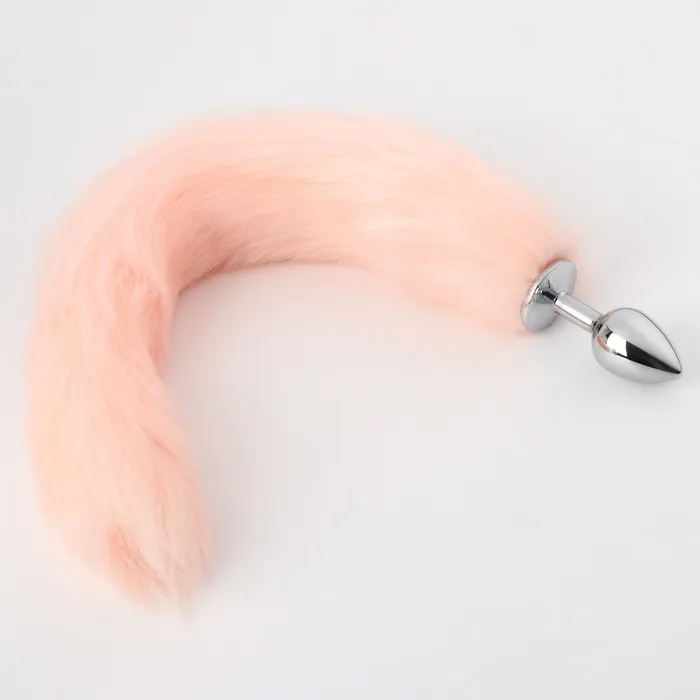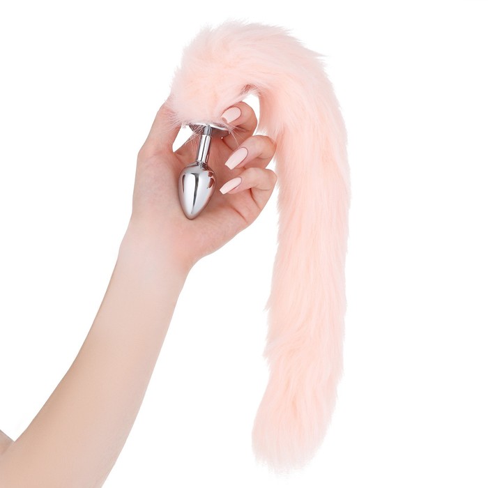 Анальная пробка с мехом, втулка серебряная 28 мм, хвост 400 мм, розовый — Характеристики