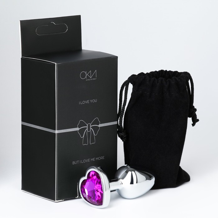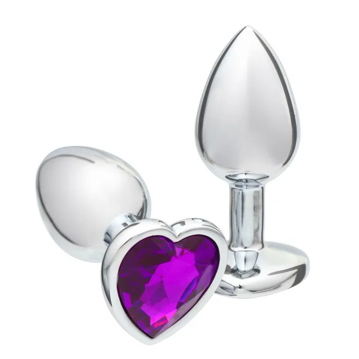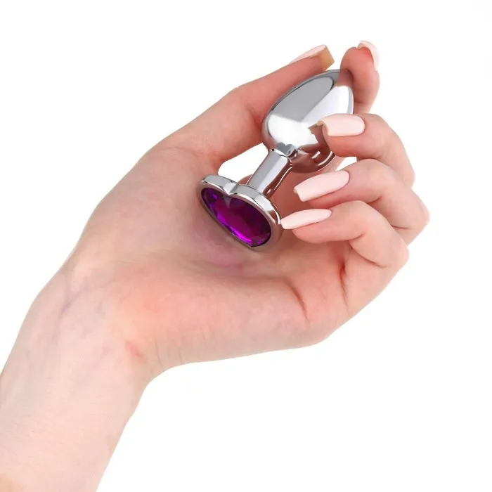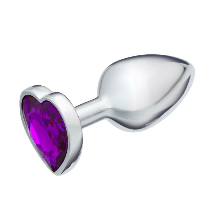Анальная пробка серебряная, кристалл фиолетовый, в форме сердца, D = 28 мм — Характеристики