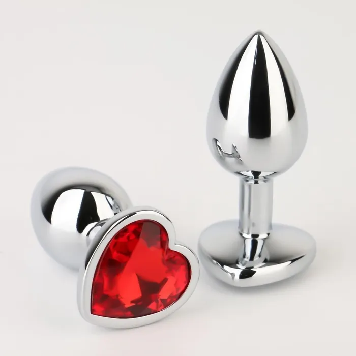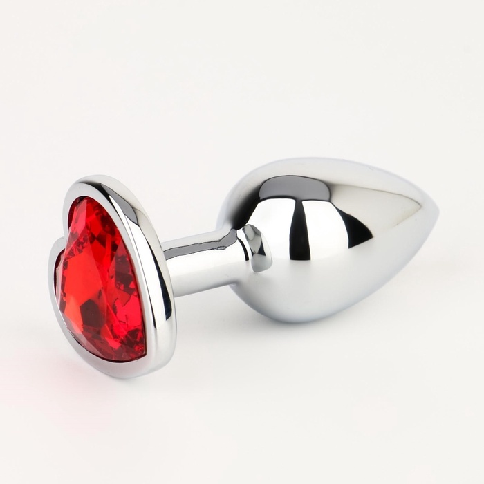 Анальная пробка серебряная, кристалл красный, в форме сердца, D = 28 мм — Характеристики