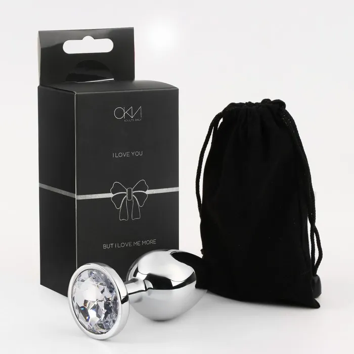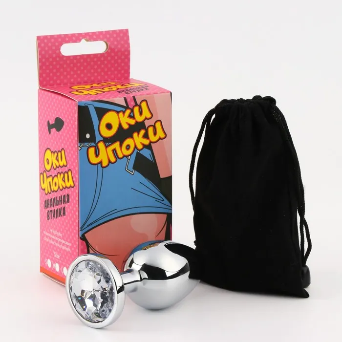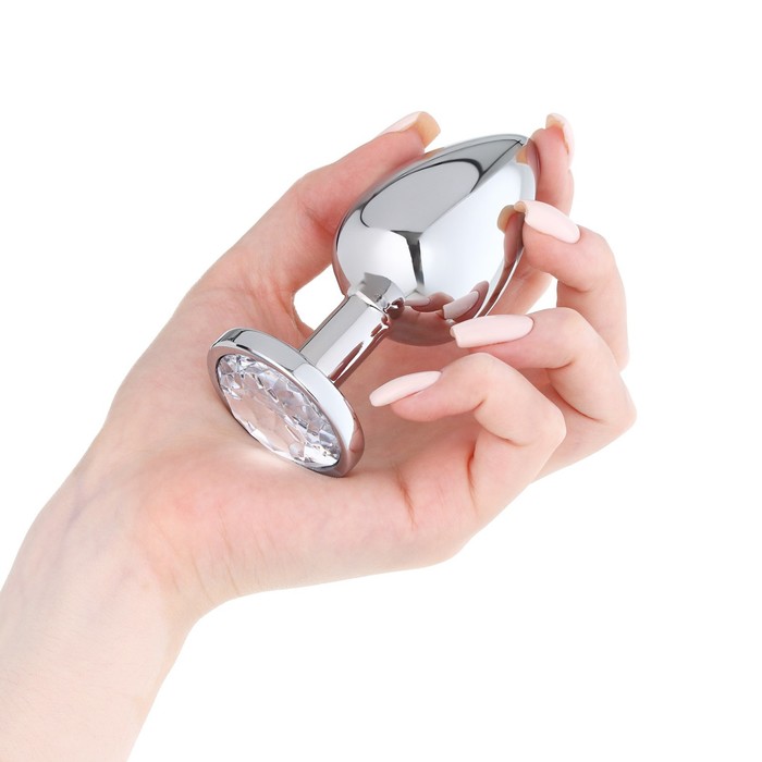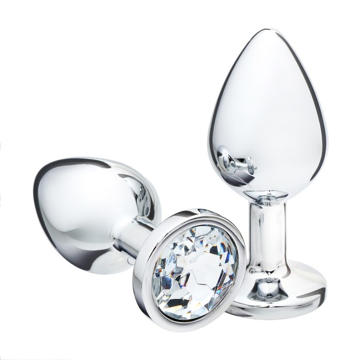 Анальная пробка серебряная, кристалл прозрачный, D = 40 мм — Характеристики