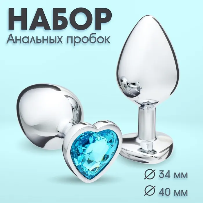 Анальная пробка со стразой, набор 2 штуки, размер M и L, серебро — Характеристики
