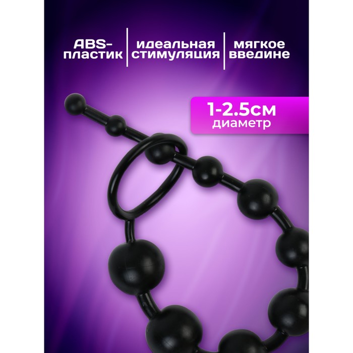 Анальные бусы выполнены из гипоаллергенного ABS-пластика. Диаметр бусин от 1 см до 2.5 см. Разный размер бусин поможет постепенно растянуть и подготовить мышцу к анальному сексу.