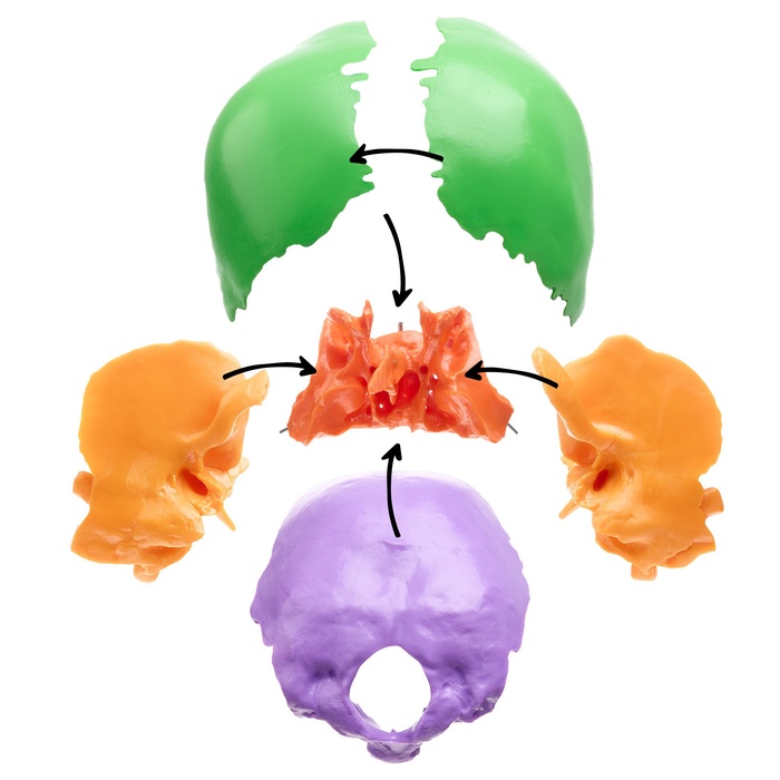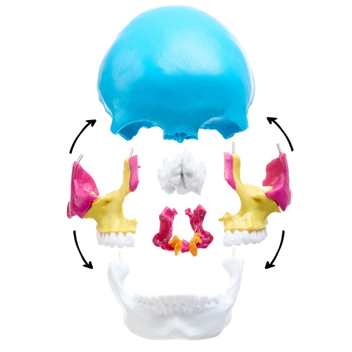 Анатомическая модель «Череп человека», разноцветный, разборный, 20 см — Характеристики