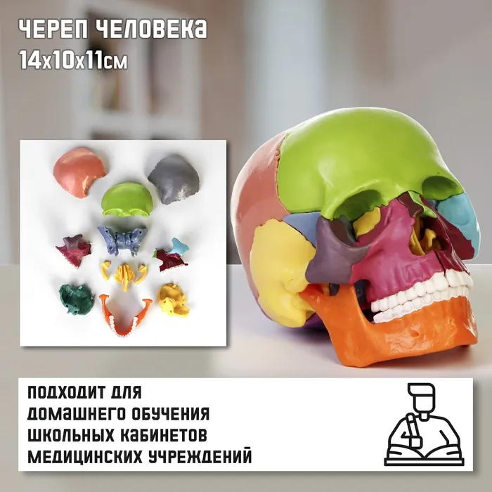 Анатомическая модель «Макет черепа человека», разборный, цветной, 14×10×11 см — Характеристики
