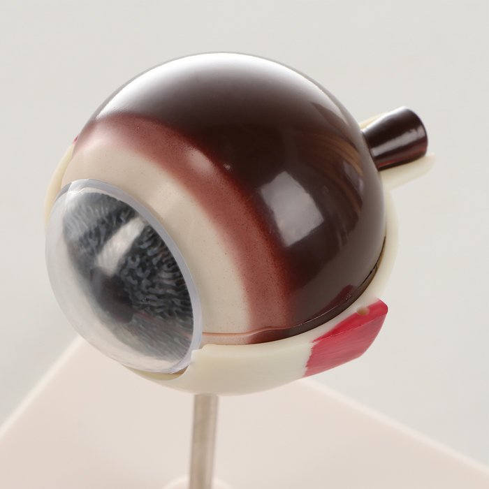 - Реалистичное строение: Модель демонстрирует глаз в разрезе с высокой детализацией – видны все ключевые структуры: роговица, хрусталик, сетчатка и зрительный нерв. Каждый элемент создан с учетом анатомической точности.