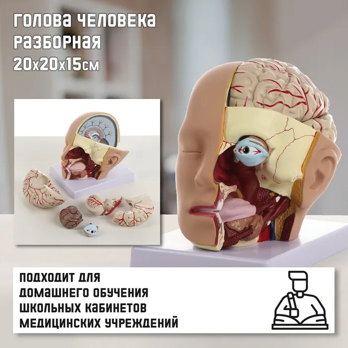 Разборная модель головы человека станет наглядным инструментом для изучения анатомии, подходящим как для школьников и студентов, так и для преподавателей, врачей и всех, кто интересуется устройством тела.