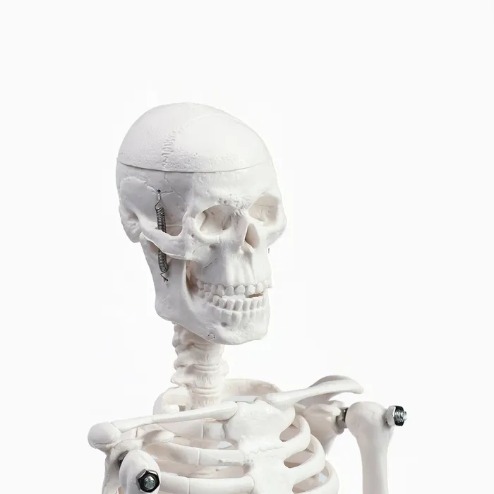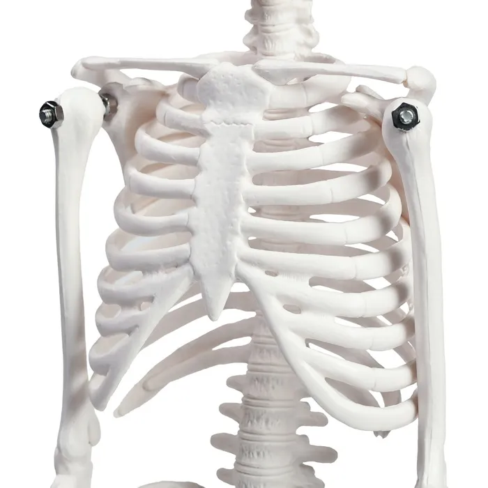 Все основные суставы подвижны, а сам скелет крепится на стойку и может располагаться как сидя, так и стоя.