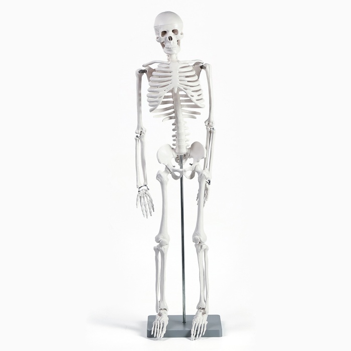 Макет «Скелет взрослого человека» в полный рост можно назвать наглядным учебным пособием для изучения анатомии человека. Модель скелета позволяет изучить строение черепа, позвоночника, грудной клетки, таза, верхних и нижних конечностей.