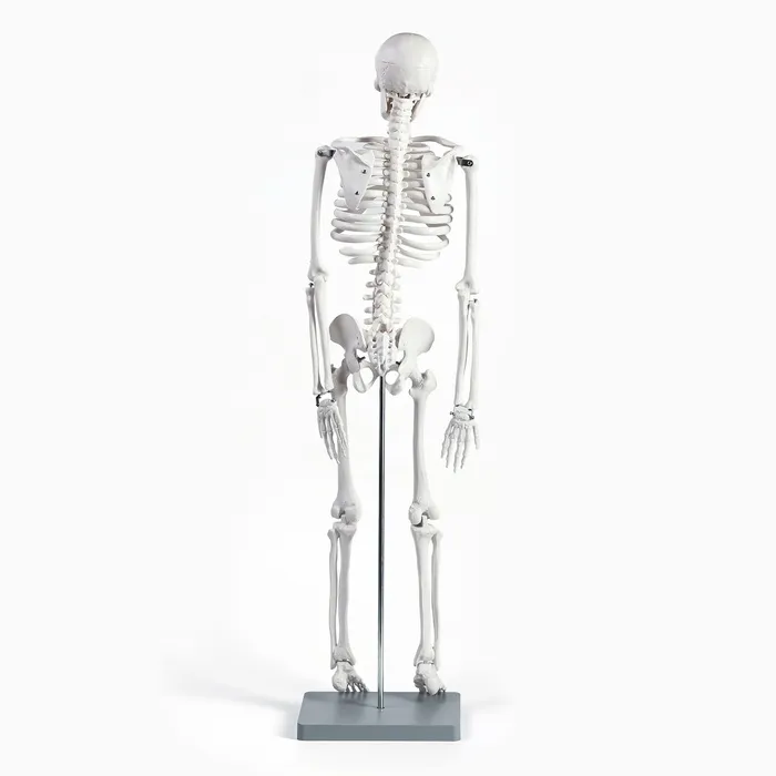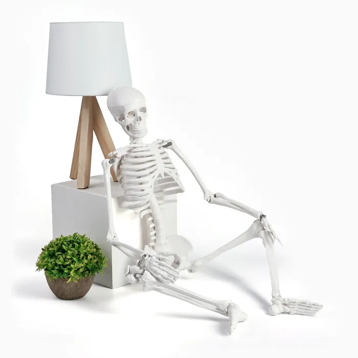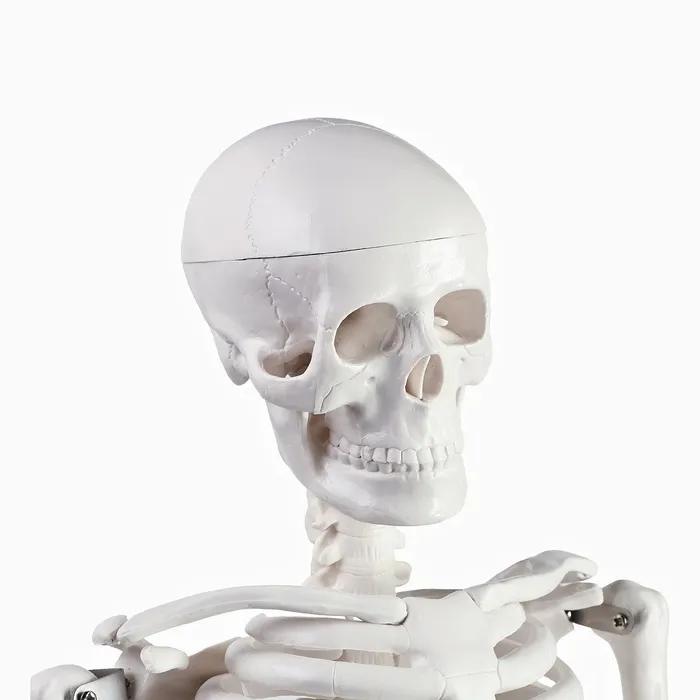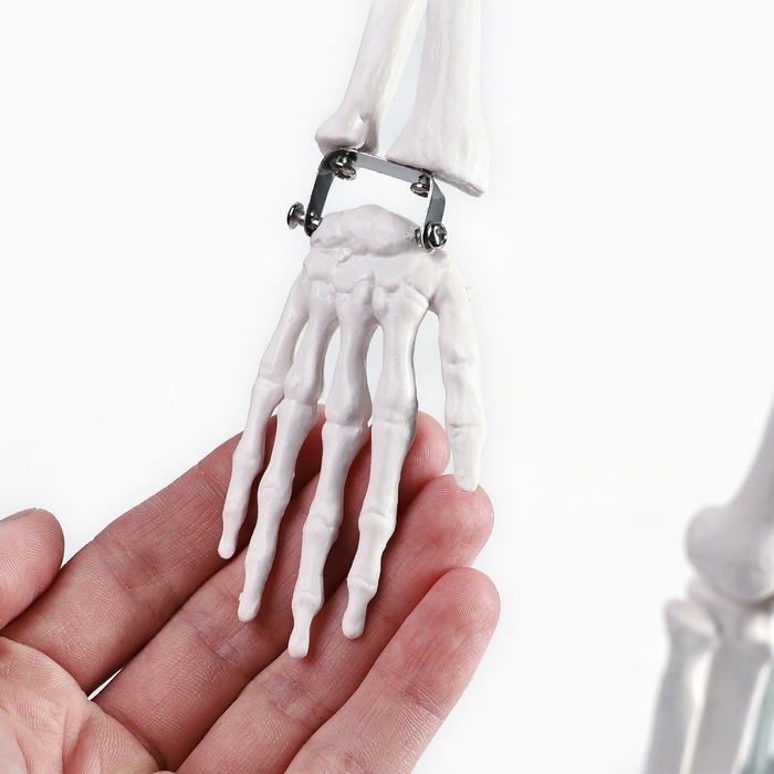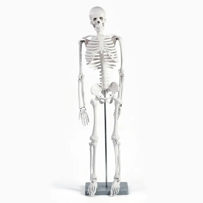 Все основные суставы подвижны, а сам скелет крепится на стойку и может располагаться как сидя, так и стоя.
