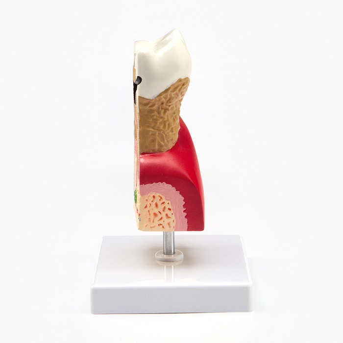 Объемная модель зуба в разрезе — это наглядный инструмент для изучения строения ротовой полости у взрослых. Учебный макет помогает сфокусироваться на деталях, которые не видны невооружённым глазом: от эмали до корня, от нерва до костной ткани.