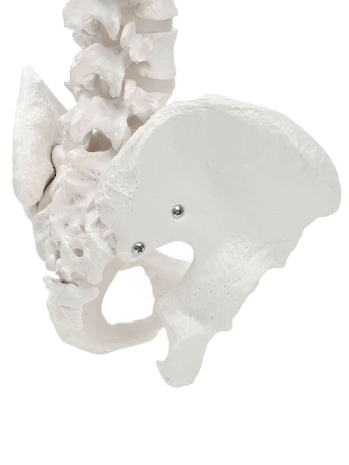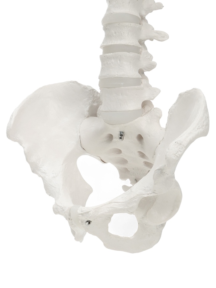 - Реалистичное отображение: Макет демонстрирует все ключевые элементы – от поясничных позвонков до крестцово-подвздошного соединения и головки бедренной кости. Он незаменим в аудиториях, где важна детальная визуализация.