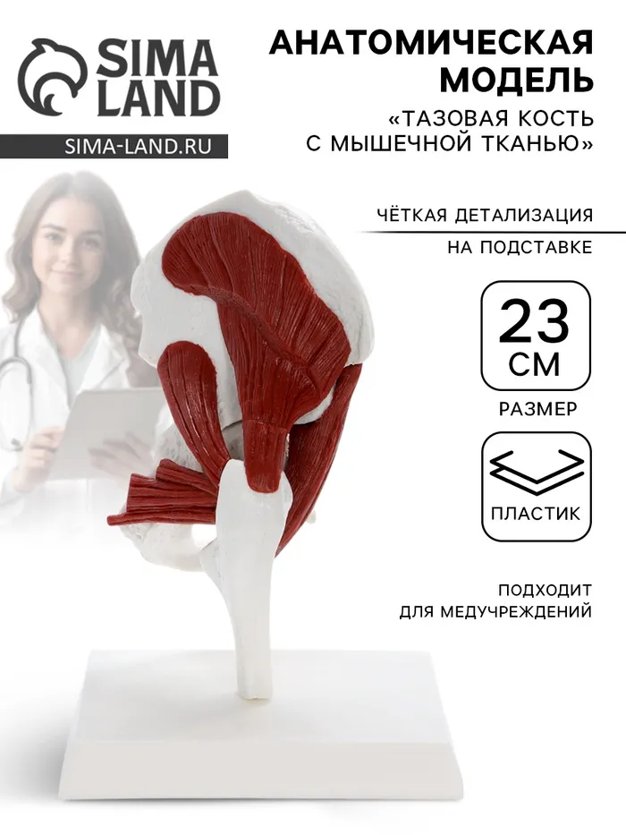 Анатомическая модель «Тазовая кость с мышечной тканью», 23 см — Характеристики