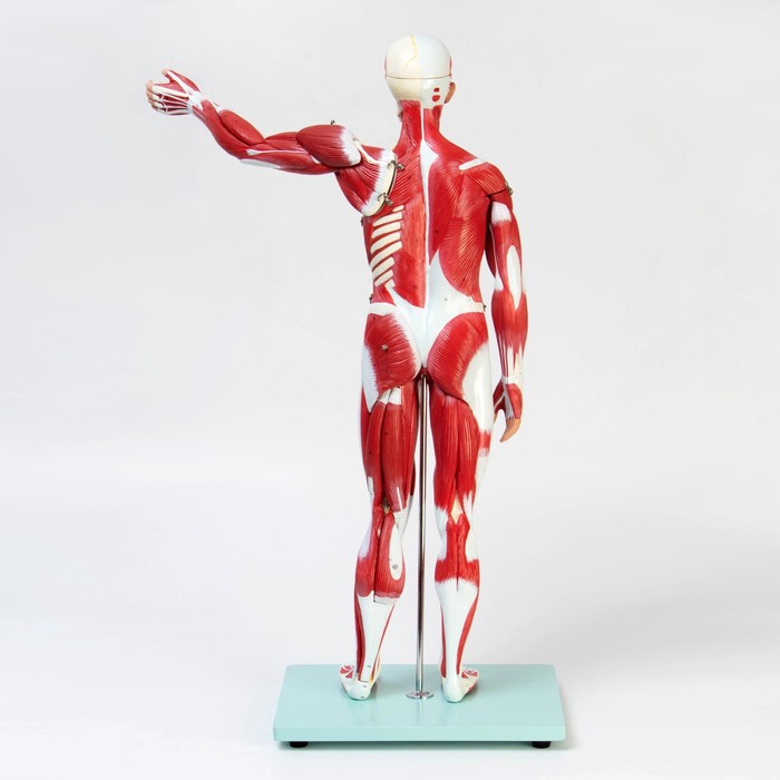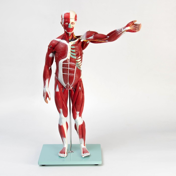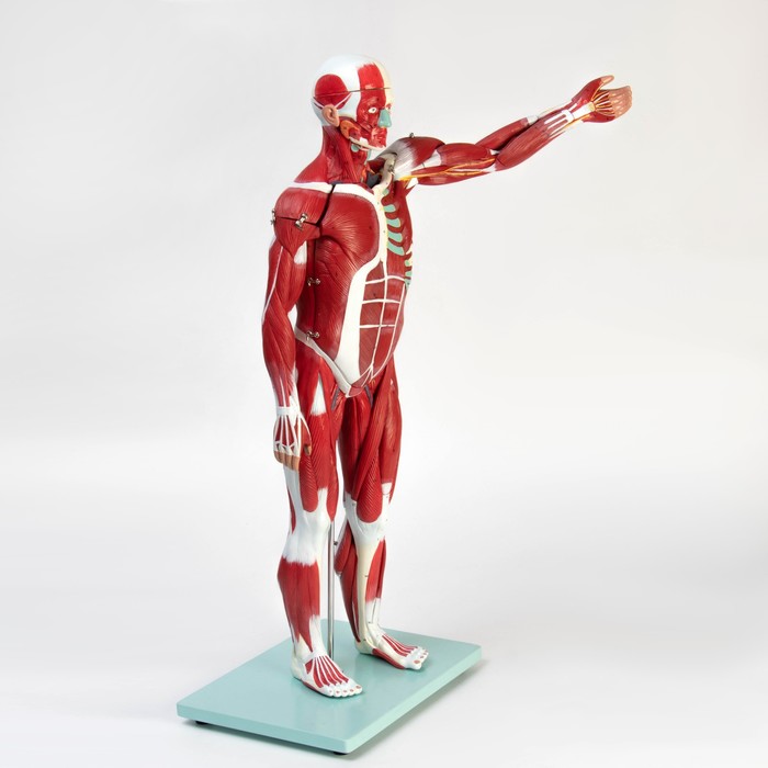 Модель дает полное представление о строении человеческого тела. Студен-медики изучают анатомические ориентиры, тренеры — расположение мышечных групп, школьники — основы физиологии. Подходит для демонстрации в учебных классах и медицинских кабинетах.