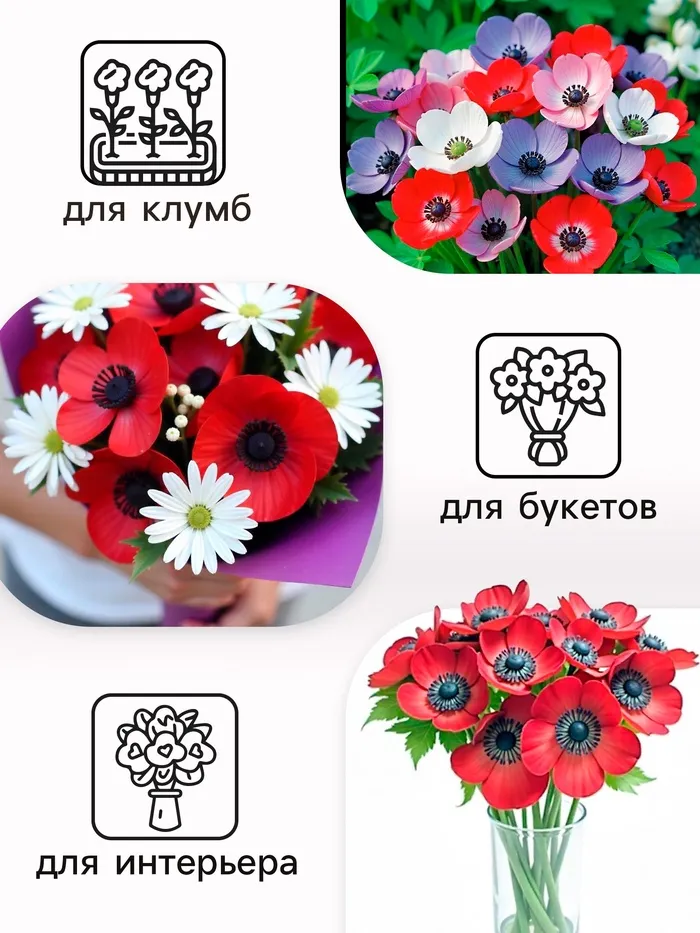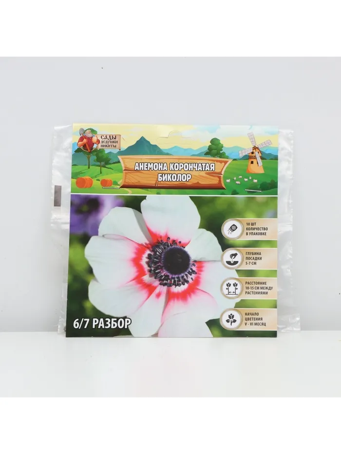 Анемона корончатая «Биколор», многолетник, луковица, р-р 4/5, 10 шт. — Характеристики