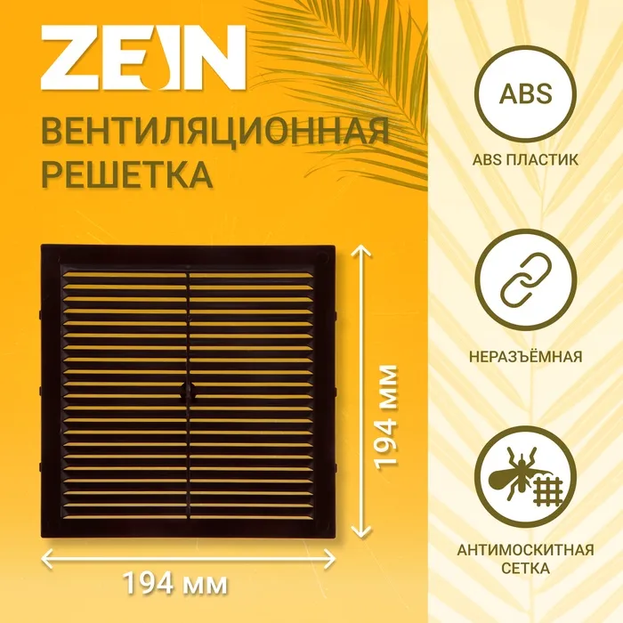 Решетка вентиляционная ZEIN Люкс Л194КР, 194×194 мм, с сеткой, неразъемная, коричневая