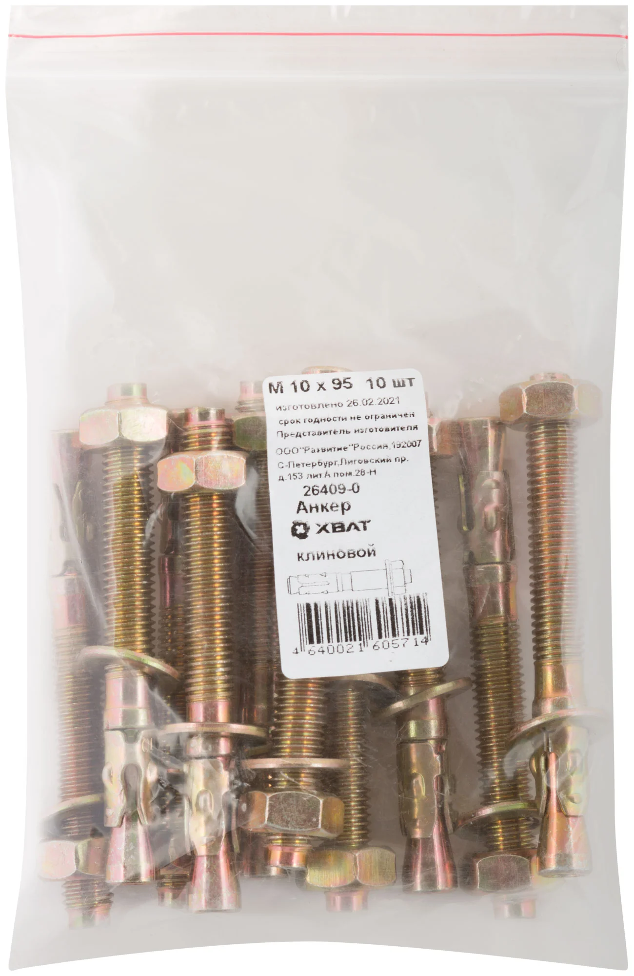 Анкер клиновой от бренда XВАТ имеет длину 95 мм и поставляется в упаковке по 10 штук. Страна производства — Россия, что гарантирует высокое качество и надежность. Размеры фасовки составляют 170x120x20 мм, а общий вес — 586 г.