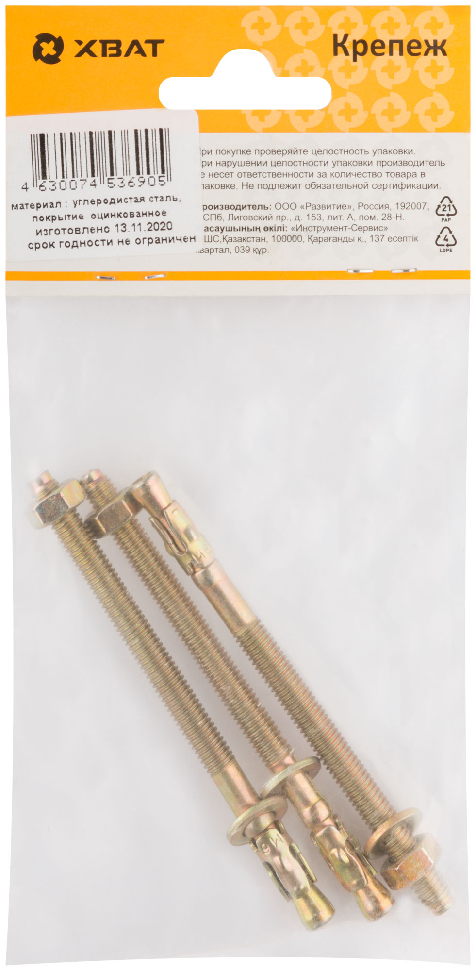 Изготовлен в России, анкер обладает высоким качеством и надежностью. Упаковка из 3 штук позволяет удобно использовать и хранить крепеж.