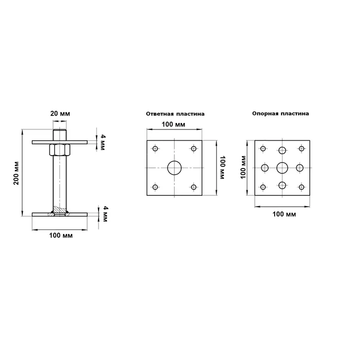 Анкер ЛОМ, регулируемый по высоте, оцинкованный, М20х200х100 мм — Характеристики