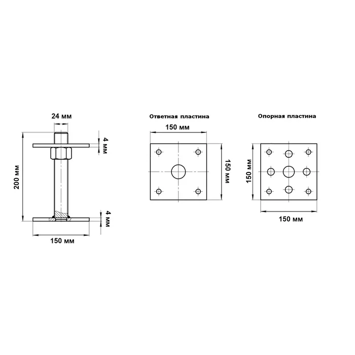 Анкер ЛОМ, регулируемый по высоте, оцинкованный, М24х200х150 мм — Характеристики
