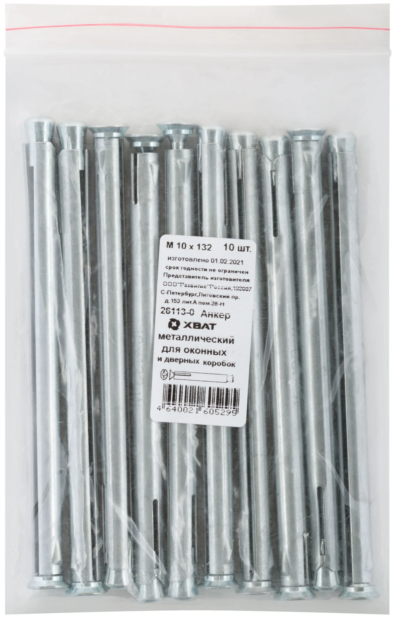 Анкер имеет типоразмер М10х132 и поставляется в упаковке по 10 штук, что делает его удобным для использования на различных объектах. Его габариты составляют 170x120x20 мм, а вес — 461 г, что обеспечивает легкость в транспортировке и хранении.